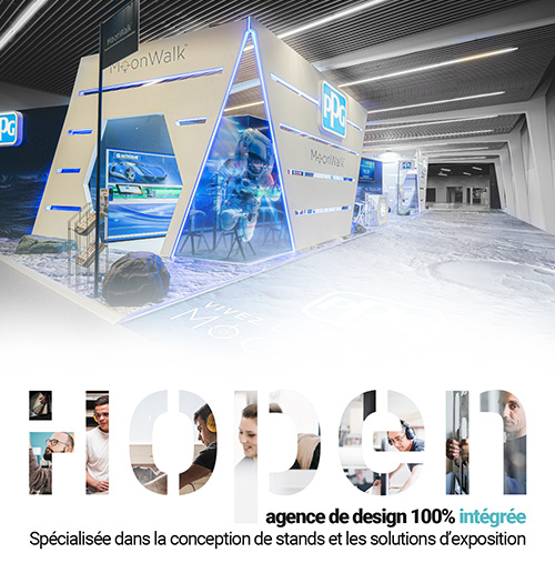 Conception de stands sur mesure, modulables, éco-responsables et réutilisables, design et agencement d’espaces en France et à l’International… Hopen est le fruit d’une construction familiale passionnée entourée d’une équipe de concepteurs, artisans, et techniciens qualifiés.